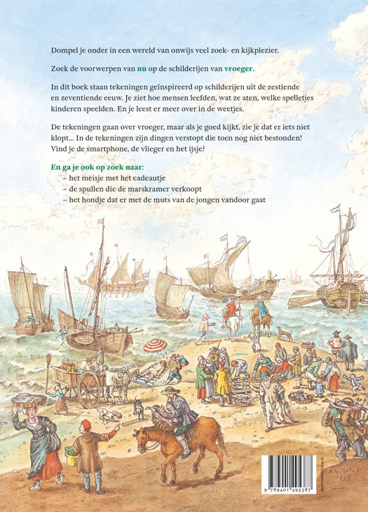 In dit boek staan tekeningen geïnspireerd op schilderijen uit de zestiende en zeventiende eeuw. Je ziet hoe mensen leefden, wat ze aten, welke spelletjes kinderen speelden. En je leest er meer over in de weetjes.