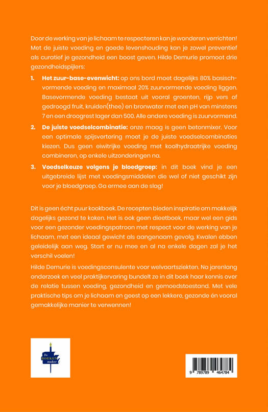 Hilde Demurie is voedingsconsulente voor welvaartsziekten. Na jarenlang onderzoek en veel praktijkervaring bundelt ze in dit boek haar kennis over de relatie tussen voeding, gezondheid en gemoedstoestand. Met vele praktische tips om je lichaam en geest op een lekkere, gezonde én vooral gemakkelijke manier te verwennen!