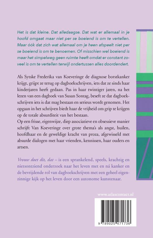 Als Sytske van Koeveringe de diagnose borstkanker krijgt, grijpt ze terug op dagboekschrijven, iets dat ze in haar kinderjaren veel heeft gedaan. Pas na het lezen van een dagboek van Susan Sontag beseft ze dat dagboekschrijven iets is dat mag bestaan en serieus wordt genomen. Het opgaan in het schrijven geeft haar weer grip op de totale absurditeit van het bestaan.