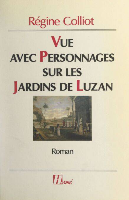 « Luigi Ferrari revint séjourner au château de Luzan à la fin août 1787 : il y resta environ cinq mois, le temps de peindre la fameuse "Vue avec personnages", qui orne le mur de mon couloir à Toulouse. Je regardais la Vue avec personnages naître sous son pinceau appliqué. Il avait commencé par le décor des jardins, les grands peupliers, le morceau de ciel traversé par les hérons, les lointains où se profilaient le village autour du clocher de l’église, le colombier, les ruines du donjon, le lacis des chemins et les énigmatiques promeneurs qui, assis en ligne sur un talus, tournaient le visage vers nous. Luigi n’était pas un exécutant parfait, mais il avait le sens du mystère. Déjà, s’esquissaient les deux arches de pierre menant aux parcs cruels, en deçà de la cascade de la Volte, dont les flots avaient roulé le corps de Giorgio. Maintenant, Luigi dessinait d’abord au crayon, au premier plan, les grands personnages : il me les nomma successivement. Je vis avec émotion ma silhouette naître, et se fixer à côté de celle d’Agathe, la comtesse et le comte Robert s’entretenir avec Desmarches. — Il manque quelqu’un, fis-je. — Qui donc ? — Le chevalier de La Brillane. — Je sais bien ; mais Madame la comtesse m’a interdit de le présenter sur la toile. »