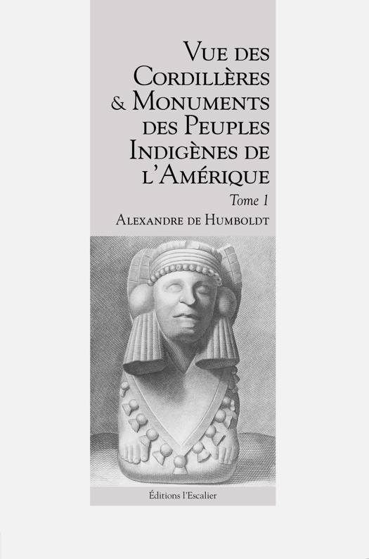Tome 1 sur 2 "J’ai réuni dans cet ouvrage tout ce qui a rapport à l’origine et aux premiers progrès des arts chez les peuples indigènes de l’Amérique. Les deux tiers des planches qu’il renferme offrent des restes d’architecture et de sculpture, des tableaux historiques, des hiéroglyphes relatifs à la division du temps et au système du calendrier. À la représentation des monuments qui intéressent l’étude philosophique de l’homme sont jointes les vues pittoresques de différents sites, les plus remarquables du nouveau continent. Les raisons qui ont motivé ce mélange se trouvent énoncées parmi les considérations générales placées à la tête de cet essai."