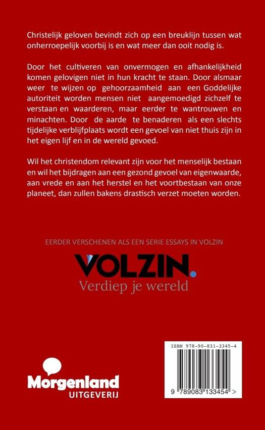 Christelijk geloven bevindt zich op een breuklijn tussen wat onherroepelijk voorbij is en wat meer dan ooit nodig is. Door het cultiveren van onvermogen en afhankelijkheid komen gelovigen niet in hun kracht te staan. Door alsmaar weer te wijzen op gehoorzaamheid aan een Goddelijke autoriteit worden mensen niet aangemoedigd zichzelf te verstaan en waarderen, maar eerder te wantrouwen en minachten. Door de aarde te benaderen als een slechts tijdelijke verblijfplaats wordt een gevoel van niet thuis zijn in het eigen lijf en in de wereld gevoed. Wil het christendom relevant zijn voor het menselijk bestaan en wil het bijdragen aan een gezond gevoel van eigenwaarde, aan vrede en aan het herstel en het voortbestaan van onze planeet, dan zullen bakens drastisch verzet moeten worden. (Met een voorwoord van Greco Idema, hoofdredacteur van Volzin)