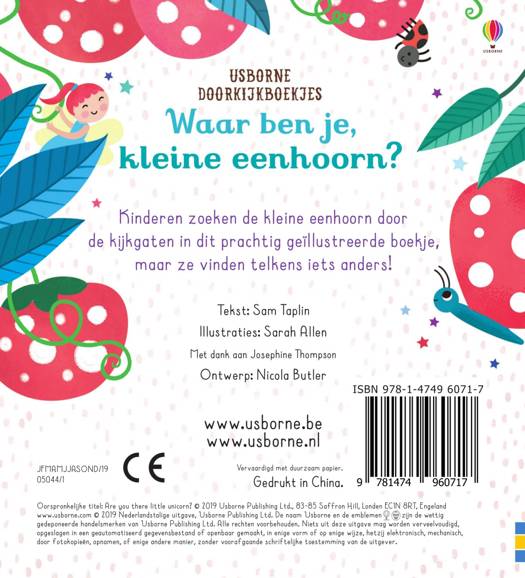Kinderen zoeken de kleine eenhoorn door de kijkgaten in dit prachtig geïllustreerde boekje, maar ze vinden telkens iets anders!