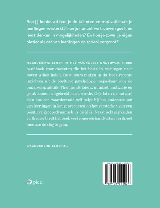 Waarderend leren in het voortgezet onderwijs is een boek voor docenten die op positieve en energieke wijze het beste in leerlingen naar boven willen halen.