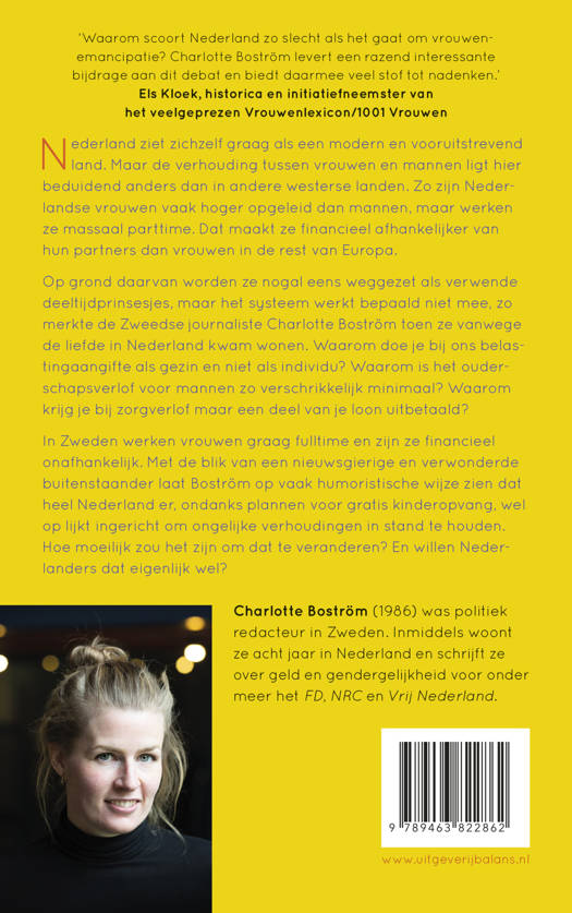 Op grond daarvan worden ze nogal eens weggezet als verwende deeltijdprinsesjes, maar het systeem werkt bepaald niet mee, zo merkte de Zweedse journaliste Charlotte Boström toen ze vanwege de liefde in Nederland kwam wonen. Waarom doe je bij ons belastingaangifte als gezin en niet als individu? Waarom is het ouderschapsverlof voor mannen zo verschrikkelijk minimaal? Waarom krijg je bij zorgverlof maar een deel van je loon uitbetaald?