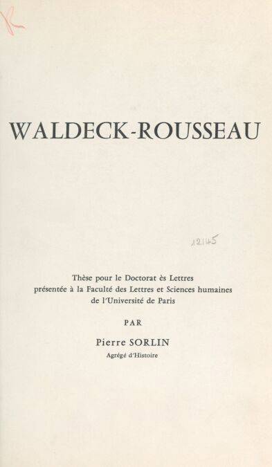 Thèse pour le Doctorat ès lettres présentée à la Faculté des lettres et sciences humaines de l'Université de Paris