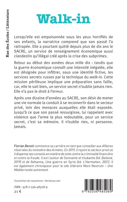 Lorsqu'elle est empoisonnée sous les yeux horrifiés de ses enfants, la narratrice comprend que son passé l'a rattrapée. Elle a pourtant quitté depuis plus de dix ans le SACRE, un service de renseignement économique aussi clandestin qu'illégal créé après la crise des subprimes. Retour au début des années deux mille dix: tandis que la guerre économique connaît une intensité inégalée, elle est désignée pour infiltrer, sous une identité fictive, les services secrets russes par la technique du walk-in. Cette mission périlleuse implique une préparation sans faille, car, elle le sait bien, un service secret n'oublie jamais rien. Elle n'a pas le droit à l'erreur. Après une dizaine d'années au SACRE, son désir de mener une vie normale la conduit à se reconvertir dans le secteur privé, loin des menaces auxquelles elle était exposée. Jusqu'à ce que son passé ressurgisse, lui rappelant avec violence que l'arme la plus redoutable, pour un service secret, c'est sa mémoire. Il n'oublie rien, ni personne. Jamais.