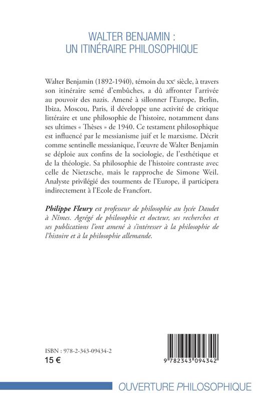 Walter Benjamin (1892-1940) à travers son itinéraire semé d’embûches, a dû affronter l’arrivée au pouvoir des nazis. Amené à sillonner l’Europe il développe une activité de critique littéraire et une philosophie de l’histoire, notamment dans ses ultimes « thèses » de 1940. Ce testament philosophique est influencé par le messianisme juif et le marxisme. Décrit comme sentinelle messianique, l’œuvre de Walter Benjamin se déploie aux confins de la sociologie, de l’esthétique et de la théologie. Sa philosophie de l’histoire contraste avec celle de Nietzsche, mais le rapproche de Simone Weil. Analyste privilégié des tourments de l’Europe, il participera indirectement à l’Ecole de Francfort.