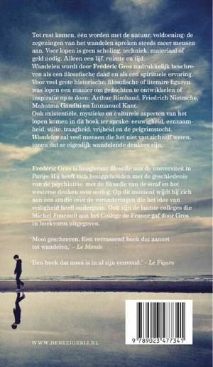 Tot rust komen, één worden met de natuur, voldoening: de zegeningen van het wandelen spreken steeds meer mensen aan. Voor lopen is geen scholing, techniek, materiaal of geld nodig. Alleen een lijf, ruimte en tijd. Wandelen wordt door Frédéric Gros nadrukkelijk beschreven als een filosofische daad en als een spirituele ervaring. Voor veel grote historische, filosofische of literaire figuren was lopen een manier om gedachten te ontwikkelen of inspiratie op te doen: Arthur Rimbaud, Friedrich Nietzsche, Mahatma Gandhi en Immanuel Kant. Ook existentiële, mystieke en culturele aspecten van het lopen komen in dit boek ter sprake: eeuwigheid, eenzaamheid, stilte, traagheid, vrijheid en de pelgrimstocht. Wandelen zal veel mensen die het niet van zichzelf weten, tonen dat ze eigenlijk wandelende denkers zijn.