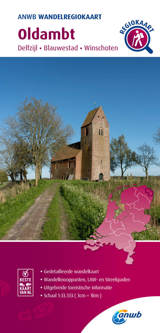 Het kaartbeeld laat verschillende landelijke en regionale wandelnetwerken zien, LAW-paden (Lange-Afstand-Wandelpaden), streekpaden en knooppunten. De routes zijn voorzien van opstap- en parkeerplaatsen, horeca, musea en toeristische informatie. Zo bereid je jouw wandeling door Oldambt tot in de puntjes voor met de ANWB Wandelregiokaart.