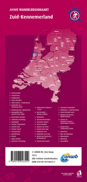 Heerlijk wandelen door het Nederlandse landschap, daarbij is deze nieuwe ANWB Wandelkaart onmisbaar. Plan je eigen route en ontdek onze nationale parken, loop langs water en over dijken, door polders en weidelandschappen en pauzeer onderweg op een gezellig terras. Het geheel nieuwe kaartbeeld laat verschillende landelijke en regionale wandelnetwerken zien, LAW-paden (Lange-Afstand-Wandelpaden), streekpaden en knooppunten. De routes zijn voorzien van opstap- en parkeerplaatsen, horeca, musea en toeristische informatie. In totaal zijn er 40 wandelregiokaarten verkrijgbaar.