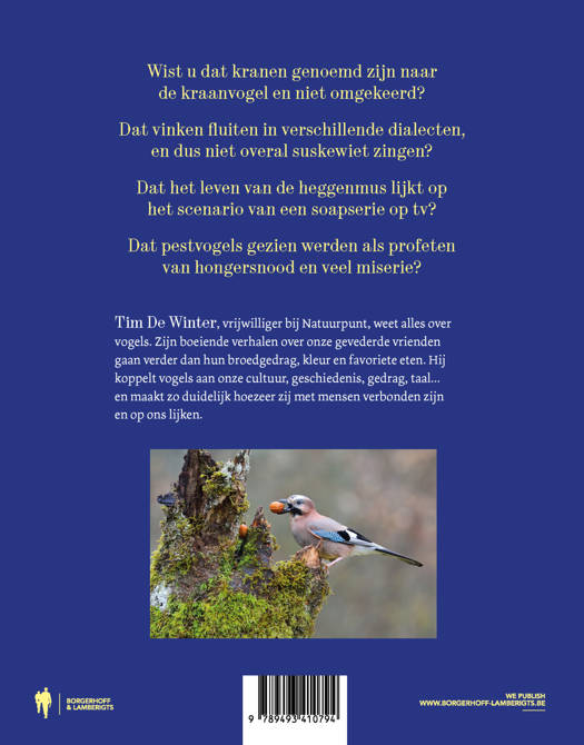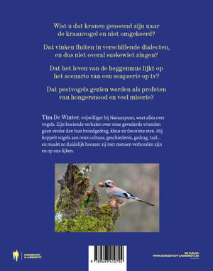 Tim De Winter, vrijwilliger bij Natuurpunt, weet alles over vogels. Zijn boeiende verhalen over onze gevederde vrienden gaan verder dan hun broedgedrag, kleur en favoriete eten. Hij koppelt vogels aan onze cultuur, geschiedenis, gedrag, taal... en maakt zo duidelijk hoezeer zij met mensen verbonden zijn en op ons lijken.