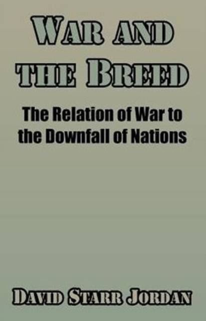 "This book is written to show the relation of war to the downfall of nations. The certainty that war leads toward racial decadence by the obliteration of the most virile elements, these being thereby left unrepresented in heredity, is becoming widely accepted as the racial argument against the War System of the world, standing second only to the final argument of the human conscience that murder remains murder even when done on a gigantic scale under the sanction of the state and the blessing of the church." David Starr Jordan (1851-1931) was a noted educator, scientist and peace activist. Educated at Cornell University, Butler University, and the Indiana University School of Medicine he became the President of Indiana University in 1885, the youngest university president in the nation at the time. Six years later, he accepted the post of President of Stanford University in Palo Alto, California, where he remained, first as president and later as chancellor, until his retirement. Dr. Jordan was a renowned expert in many fields. His training was mainly in ichthyology, the study of fish, and he was widely regarded in that field. He served as an expert witness on the validity of the theory of evolution at the Scopes trial in Tennessee. In addition, he was known for his work in education and philosophy, publishing many works on those subjects.