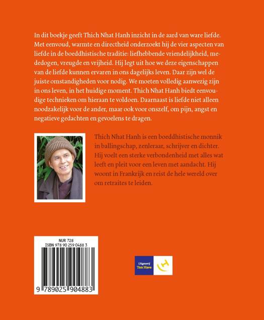 In dit boek geeft Thich Nhat Hanh inzicht in de aard van ware liefde. Met eenvoud, warmte en directheid onderzoekt hij de vier aspecten van liefde in de boeddhistische traditie: liefhebbende vriendelijkheid, mededogen, vreugde en vrijheid. Hij legt uit hoe we deze eigenschappen van de liefde kunnen ervaren in ons dagelijks leven. Daar zijn wel de juiste omstandigheden voor nodig. We moeten volledig aanwezig zijn in ons leven, in het huidige moment.