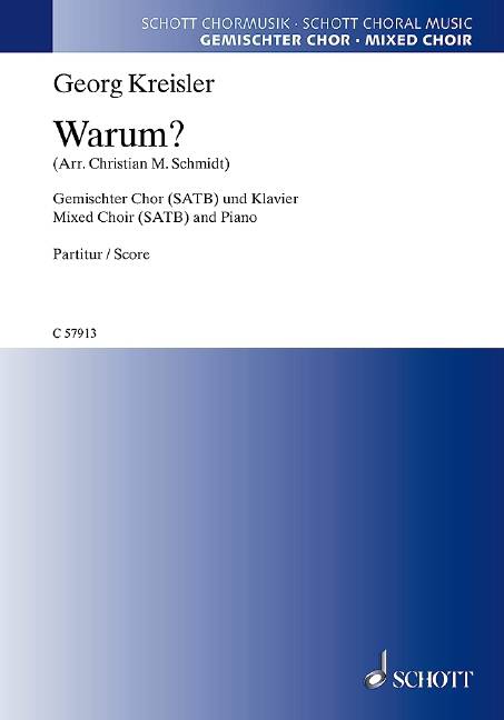 Georg Kreisler - das ist scharfer, tiefsinnig schwarzer Humor! Die Singphoniker haben Georg Kreislers bekannteste Lieder für Männerensemble arrangiert und auf CD aufgenommen. Die zugehörige Notenausgabe für gemischten Chor SATB mit Klavierbegleitung ist bei Schott Music erschienen (Georg Kreisler - Lieder und Chansons, ED 22737). Ergänzend dazu sind Einzelausgaben aller Lieder aus dem Notenalbum erhältlich: Warum sind die Leute so feige? Nach Gesellschaftskritik folgt Resignation. Kreislers sonst so humoristisch-kritische Art mündet hier in die schlichte Frage: Warum? Er fragt nach dem Grund für Trägheit, Fügsamkeit und Anpassung in der Gesellschaft. Die Forderung nach Ausbruch aus dieser Lethargie, die jedoch eher halbherzig ausgesprochen wird, beschließt das Werk. Schwierigkeitsgrad: 2-3