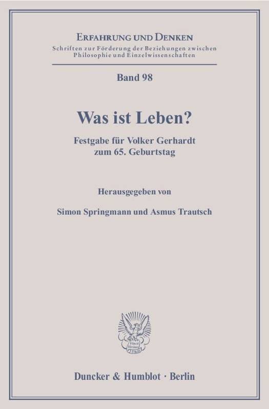 Der Begriff des Lebens hat in weiten Teilen der akademischen Philosophie des 20. Jahrhunderts keine zentrale Rolle gespielt. Nachdem ihn die Lebensphilosophie vor allem als Gegensatz zur Vernunft exponiert hatte, wurde er von der europäischen und amerikanischen Philosophie weitgehend den Naturwissenschaften, insbesondere der Biologie, überlassen. Der Berliner Philosoph Volker Gerhardt hat in den letzten drei Jahrzehnten demgegenüber an die begründende Rolle des Lebens in der Philosophie seit Platon erinnert und gezeigt, dass alle menschlichen Leistungen, so auch das philosophische Denken, nur unter der Bedingung des Lebens zu begreifen sind. Auch wenn sie als Symbolsysteme, soziale Praktiken, ästhetische Formen, rechtliche Institutionen oder politische Ordnungen eine Realität sui generis gewinnen, bleiben sie durch die lebendige Dynamik von Bedürfnissen und Interessen bestimmt. So kann, wie Gerhardt in seinen historischen und systematischen Studien vorgeführt hat, auch die Vernunft selbst als Funktion des Lebens verstanden werden.