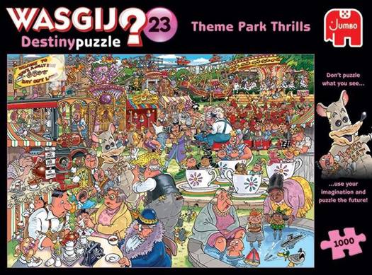 Jarenlang gingen mensen met het hele gezin naar het pretpark voor een dagje uit vol spanning en plezier. Weet je nog wel, die gezellige gezinsvriendelijke attracties, zoals ouderwetse draai -en zweefmolens, elektrische hobbelpaarden, blikgooien en van die mascottes die vermoeid in de lens kijkend op de foto gingen met de kids?Het gaat er tegenwoordig wel heel anders aan toe! Op sensatie beluste waaghalzen willen hypermodern, adrenaline opstuwend amusement met extreme ritten en virtuele attracties waarbij de tranen je in de ogen schieten van plezier ... of ellende. Hoe anders ziet zo’n pretpark vol actie en avontuur van nu er eigenlijk uit? Dat is het beeld dat je puzzelt!