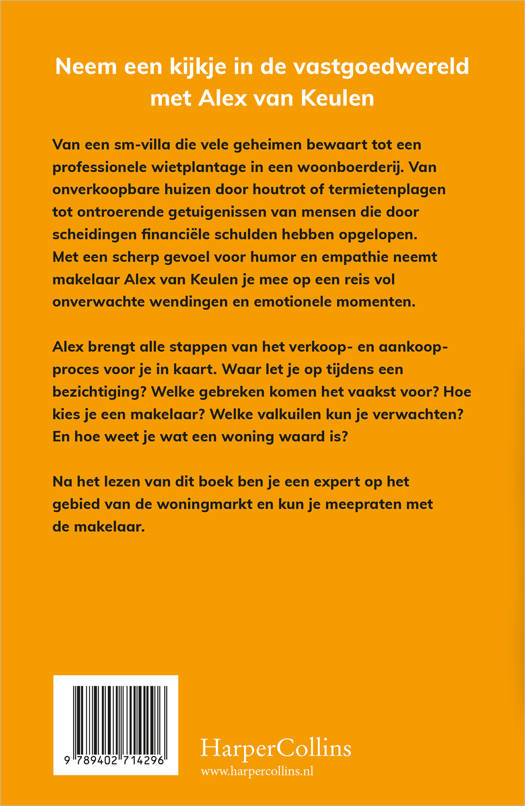 Van een sm-villa die vele geheimen bewaart tot een professionele wietplantage in een woonboerderij. Van onverkoopbare huizen door houtrot of termietenplagen tot ontroerende getuigenissen van mensen die door scheidingen financiële schulden hebben opgelopen. Met een scherp gevoel voor humor en empathie neemt makelaar Alex van Keulen je mee op een reis vol onverwachte wendingen en emotionele momenten.