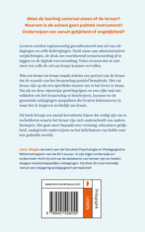 Moet de leerling centraal staan of de leraar? Waarom is de school geen politiek instrument? Onderwijzen we vanuit gelijkheid of ongelijkheid? Leraren worden tegenwoordig geconfronteerd met tal van uitdagingen en zelfs bedreigingen. Denk maar aan administratieve verplichtingen, de druk om voortdurend verantwoording af te leggen en de digitale vervreemding. Velen ervaren dat ze niet meer ten volle de rol van leraar kunnen vervullen. Wat een leraar tot leraar maakt schetst een portret van de leraar dat de waarde van het leraarschap positief benadrukt. Het vat leraar zijn op als een specifieke manier om in het leven te staan. Pas als we deze zijnswijze goed begrijpen en een rijke taal ontwikkelen om het leraarschap te beschrijven, kunnen we de genoemde uitdagingen aanpakken die leraren belemmeren in waar het in lesgeven werkelijk om draait. Dit boek brengt een aantal kernideeën bijeen die nodig zijn om te verhelderen waarin het leraar zijn zich onderscheidt van andere beroepen. Het gaat meer bepaald over vorming, educatieve gelijkheid, zaakgericht onderwijzen en het belichamen van liefde voor een gedeelde wereld.