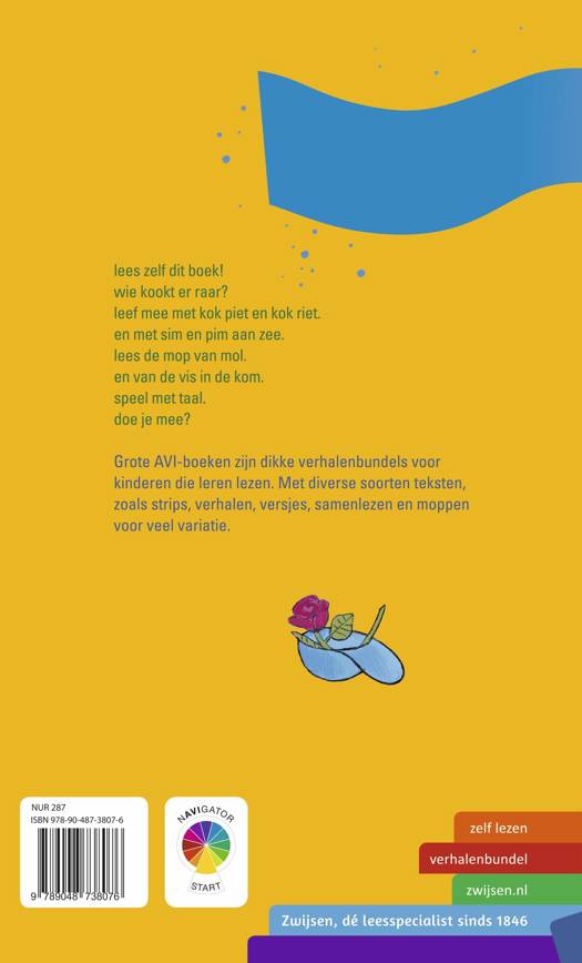 Dikke verhalenbundel voor kinderen die leren lezen. Alle teksten zijn geschreven op het makkelijkste AVI-niveau Start. Het bevat veel verschillende soorten teksten, zoals strips, versjes, moppen, informatieve teksten en (korte) verhalen. Zo kunnen kinderen lekker doorlezen op hun eigen niveau. Van bekende schrijvers zoals Paul van Loon, Bette Westera en Martine Letterie, dus voor iedere lezer wat wils!