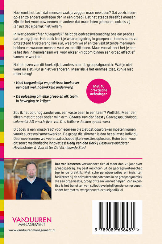 In Wat gebeurt hier nu eigenlijk? helpt de gedragswetenschap ons om precies dat te begrijpen. Het boek leert je waarom gedrag in groepen en teams soms zo ontzettend frustrerend kan zijn, waarom we af en toe vastzittende meningen hebben en waarom mensen vaak zo moeilijk doen. Maar vooral leert het je hoe je het dan in hemelsnaam wél voor elkaar krijgt om binnen een groep effectief samen te werken.