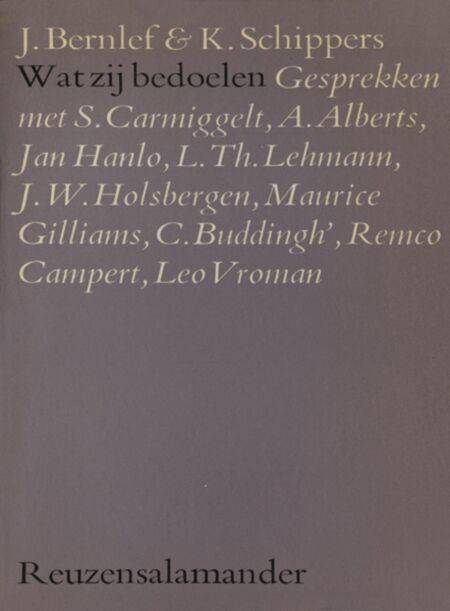 De titel van dit boek werd ontleend aan het gelijknamige gedicht van Jan Hanlo, dat als motto in de bundel is opgenomen.Het onvermogen te communiceren, dat het onderwerp van Hanlo's gedicht is, relativeert de titel van dit boek, waarin J.Bernlef en K.Schippers hun interviews, die zij in opdracht van het tijdschrift De Gids maakten, hebben gebundeld. Bernlef en Schippers zijn zich bewust van de onmogelijkheid er precies achter te komen 'wat zij bedoelen' maar hebben veel van de op het omslag vermelde auteurs tot treffende uitspraken weten te verleiden, niet in het minst omdat zij geen schijnbare kleinigheden over het hoofd zagen; kleinigheden waaruit vaak de kern van een schrijverschap viel af te leiden. Uitgaande van het werk van een auteur maakten Bernlef en Schippers eerder een omtrekkende beweging dan een frontale aanval. De resultaten van deze tactiek vindt u in dit boek met interviews.
