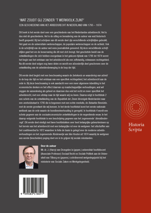 Dit boek is het eerste deel over een geschiedenis van het Nederlandse arbeidsrecht. Het is dus niet dé geschiedenis. Het is de uitleg en benadering van de auteur van wat historisch heeft gespeeld. Bij het schrijven van dit eerste deel zijn verschillende schrijfstijlen gebruikt. Het gaat om de universitaire wetenschapper, de populaire wetenschapper en de activist. Ook is de schrijfstijl van de auteur wel eens journalistiek genoemd. Bij deze verschillende schrijfstijlen gaat het om de leeservaring die dit met zich brengt. Het geschetste beeld van de ontwikkelingen die zich hebben voorgedaan in het gekozen tijdvak van 1795 tot 1874 vormt het begin van het ontstaan van het arbeidsrecht als een zelfstandig, volwassen rechtsgebied. Na dit eerste deel volgen nog twee delen en wordt een afzonderlijk deel geschreven over de ontwikkeling van de arbeidersbeweging in de loop der tijd. Dit eerste deel begint met een beschouwing waarin de betekenis en waardering van arbeid in de loop der tijd en het ontstaan van een specifiek rechtsgebied, het arbeidsrecht aan de orde is. Bij deze beschouwing is ook aandacht voor een meer algemene inbedding in het economische denken en het effect daarvan op maatschappelijke verhoudingen, wat wil zeggen de samenleving als geheel en daarmee dus ook het recht en meer specifiek het arbeidsrecht, met een uitstap naar de tijd waarin wij nu leven. Daarna volgt in hoofdstuk 2een schets van de ontwikkeling van de Republiek der Zeven Verenigde Nederlanden naar een eenheidsstaat in 1795 die is begonnen met een echte revolutie, de Bataafse Revolutie, met de eerste grondwet die wij kennen. In het derde hoofdstuk komt het eerste nationale wetboek aan de orde waarin de loondienstverhouding is geregeld. In hoofdstuk 4 wordt een schets gegeven van de sociaaleconomische ontwikkelingen in de negentiende eeuw. In het daaropvolgende hoofdstuk is een beschrijving gegeven van het zogenoemde ‘dienstbodenregt’. Dit eerste deel eindigt met twee hoofdstukken over heel belangrijke gebeurtenissen op het terrein van het arbeidsrecht met een belangrijke rol voor de wetgever: het afschaffen van het coalitieverbod in 1872 waardoor in feite de basis is gelegd voor de moderne arbeidsverhoudingen en het zogenoemde Kinderwetje van Van Houten uit 1874 waarbij de wetgever een eerste (bescheiden) poging doet om in te grijpen bij sociale misstanden.