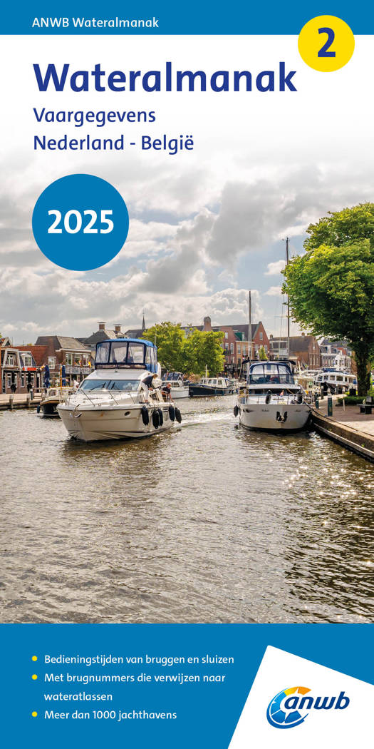 De ANWB Wateralmanak deel 2 is een compleet naslagwerk met alle bedieningstijden van bruggen en sluizen in Nederland. In de almanak zijn brugnummers opgenomen die verwijzen naar actuele ANWB Waterkaarten, zodat je altijd de juiste informatie voorhanden hebt. Daarnaast bevat de almanak praktische informatie, zoals openingstijden en voorzieningen van meer dan 1000 jachthavens. Van de Wateralmanak deel 2 verschijnt jaarlijks een herziene versie waardoor je altijd de meest actuele informatie aan boord hebt.