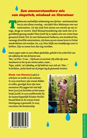 Tijdens een nachtelijke verkenning van zijn bos – een boswachter ben je niet alleen overdag – struikelt Nico Waltzman over een watermeloen. Uit dat stuk fruit doemt een wereld op van intrige, drugs en moord. Alsof klimaatverandering zijn werk niet al ingewikkeld genoeg maakt! Plots heeft Nico te maken met een crime boss genaamd Schele Ted. En met Mohammed Fadlaoui, een straatboef die, vanwege diezelfde misplaatste watermeloen, zijn kans op een nieuw leven in Dubai steeds kleiner ziet worden. En, o ja, Nico blijkt een twaalfjarige zoon te hebben. Zijn ex moest hem dat nog vertellen.