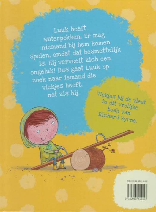 Luuk heeft waterpokken. Er mag niemand bij hem komen spelen omdat dat besmettelijk is. Hij verveelt zich een ongeluk! Dus gaat Luuk op zoek naar iemand die vlekjes heeft, net als hij.
