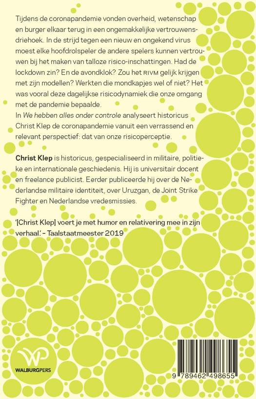 In 'We hebben alles onder controle' analyseert historicus Christ Klep de coronapandemie vanuit een verrassend en relevant perspectief: dat van onze risicoperceptie.