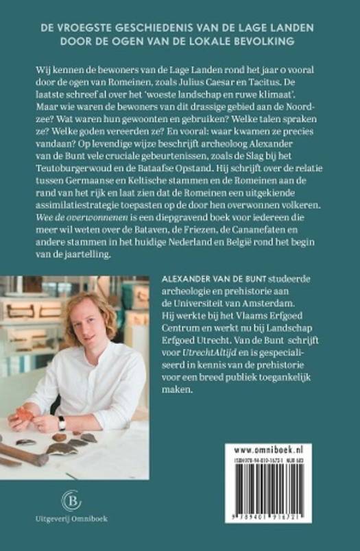 In Wee de overwonnenen vertelt de talentvolle archeoloog Alexander van de Bunt het verhaal van de vroege bewoners van onze streken. Wij kennen de bewoners van de Lage Landen van 2000 jaar geleden vooral door de ogen van Romeinen, zoals Julius Caesar en Tacitus. De laatste schreef al over het 'woeste landschap en ruwe klimaat'. Maar wat troffen de Romeinen hier aan, toen ze aankwamen in dit drassige gebied aan de Noordzee? Welke volkeren woonden hier en waar kwamen ze precies vandaan? Welke talen spraken ze? Welke goden vereerden ze? En vooral: wat betekende de komst van de Romeinen voor hen?