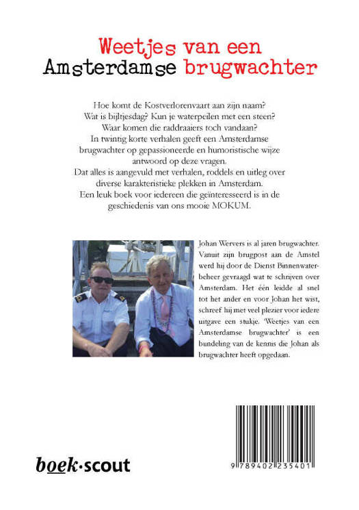 Hoe komt de Kostverlorenvaart aan zijn naam? Wat is bijltjesdag? Kun je waterpeilen met een steen? Waar komen die raddraaiers toch vandaan? In twintig korte verhalen geeft een Amsterdamse brugwachter op gepassioneerde en humoristische wijze antwoord op deze vragen. Dat alles is aangevuld met verhalen, roddels en uitleg over diverse karakteristieke plekken in Amsterdam. Een leuk boek voor iedereen die geïnteresseerd is in de geschiedenis van ons mooie MOKUM.
