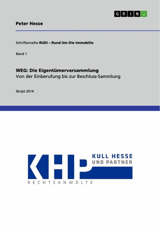 Skript aus dem Jahr 2014 im Fachbereich Jura - Zivilrecht / BGB AT / Schuldrecht / Sachenrecht, Sprache: Deutsch, Abstract: Die Eigentümerversammlung ist das Organisationsforum der Wohnungseigentümer zur Gestaltung der wichtigsten Mitgliedsrechte. Sie ist vergleichbar mit der Mitgliederversammlung eines Vereins. Hier werden die gemeinschaftlichen Angelegenheiten der Wohnungseigentümer durch Beschlussfassungen geregelt. Theoretisch wäre zwar eine Eigentümerversammlung entbehrlich, da die Wohnungseigentümer alle Entscheidungen auch im schriftlichen Umlaufverfahren treffen könnten. In diesem Fall würde jedoch eine Entscheidung erst zustande kommen, wenn alle Wohnungseigentümer dem schriftlichen Beschlussantrag zugestimmt hätten. Mehrheitsentscheidungen wären in diesem Fall unmöglich. Tatsächlich gesehen ist die Eigentümerversammlung jedoch unentbehrlich. In ihr findet der Gedankenaustausch der Wohnungseigentümer statt. Die Erfahrung in der Praxis zeigt, dass in den Eigentümerversammlungen Entscheidungen getroffen werden, die inhaltlich in einem schriftlichen Umlaufverfahren so nie zustande gekommen wären. Schließlich gibt es auch nur in der Eigentümerversammlung die Möglichkeit, gemeinschaftliche Angelegenheiten durch Mehrheitsbeschlüsse zu regeln.