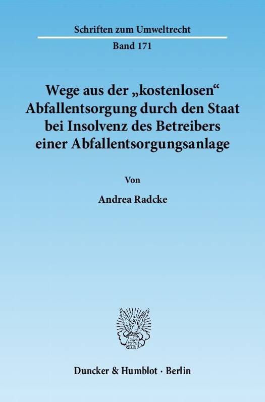 Andrea Radcke widmet sich der Frage, wie im Falle der Insolvenz eines Abfallentsorgungsunternehmens zu verhindern ist, dass die öffentliche Hand die Kosten der Abfallentsorgung tragen muss, wie es in der Vergangenheit insbesondere in Brandenburg häufig auftrat. Nach einer Auseinandersetzung mit dem Abfallbegriff stellt die Autorin zunächst dar, wie bereits vor Eintritt der Insolvenz möglichen Kosten zulasten des Staates vorgebeugt werden kann. Neben den allgemeinen abfallbezogenen Betreiberpflichten bilden die Ausführungen zur Sicherheitsleistung im Anlagengenehmigungsrecht den Schwerpunkt dieser Betrachtung. Ferner erläutert die Autorin, ob nach dem Eintritt der Insolvenz Dritte für die ordnungsgemäße Abfallentsorgung haften müssen. Sie untersucht die Verantwortlichkeit des Insolvenzverwalters, des ehemaligen Abfallbesitzers, des Abfallerzeugers und des Grundstückseigentümers.