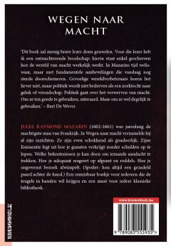 Jules Raymond Mazarin (1602-1661) was jarenlang de machtigste man van Frankrijk. In "Wegen naar macht" verzamelde hij al zijn inzichten. Ze zijn even schokkend als goudeerlijk. Zijne Eminentie legt uit hoe je gunsten verkrijgt zonder schulden op te lopen. Welke bekentenissen je kan doen om iemands aandacht te trekken. Hoe je adequaat reageert op afgunst en roddels. Hoe je ongewenst bezoek afwimpelt. (Spoiler: hou altijd een gezadeld paard achter de hand.) Een onmisbaar boekje voor iedereen die de teugels in handen wil krijgen en een must voor iedere klassieke bibliotheek.