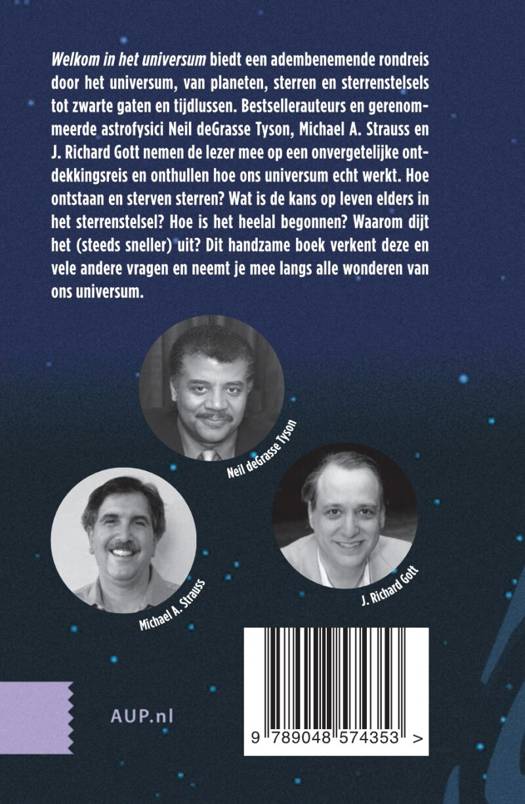 'Welkom in het universum' biedt een adembenemende rondreis door het universum, van planeten, sterren en sterrenstelsels tot zwarte gaten en tijdlussen. Bestsellerauteurs en gerenommeerde astrofysici Neil deGrasse Tyson, Michael A. Strauss en J. Richard Gott nemen de lezer mee op een onvergetelijke ontdekkingsreis en onthullen hoe ons universum echt werkt. Hoe ontstaan en sterven sterren? Wat is de kans op leven elders in het sterrenstelsel? Hoe is het heelal begonnen? Waarom dijt het (steeds sneller) uit? Dit handzame boek verkent deze en vele andere vragen en neemt je mee langs alle wonderen van ons universum.