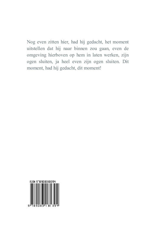 Nog even zitten hier, had hij gedacht, het moment uitstellen dat hij naar binnen zou gaan, even de omgeving hierboven op hem in laten werken, zijn ogen sluiten, ja heel even zijn ogen sluiten. Dit moment, had hij gedacht, dit moment!