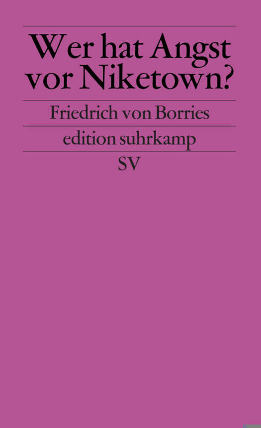 »Wer hat Angst vor Niketown? zeigt auf, wie urbaner Raum durch Nike in eine neue Markenstadt verwandelt wird. In seinen Analysen weis Friedrich von Borries dies überraschend konkret vor Augen zu führen. Er verfährt nicht nur analytisch, sondern unternimmt auch spekulative Exkursionen in die Zukunft - gerade dadurch gewinnen seine detaillierten Analysen der gegenwärtigen Marketingstrategien an Kraft.« (Bart Lootsma, Architekturtheoretiker)