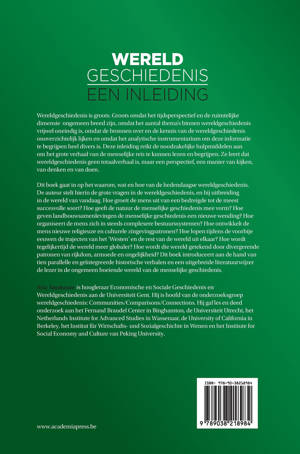 Wereldgeschiedenis is groots. Groots omdat het tijdsperspectief en de ruimtelijke dimensie ongemeen breed zijn, omdat het aantal thema's binnen wereldgeschiedenis vrijwel oneindig is, omdat de bronnen over en de kennis van de wereldgeschiedenis onoverzichtelijk lijken en omdat het analytische instrumentarium om deze informatie te begrijpen heel divers is. Deze inleiding reikt de noodzakelijke hulpmiddelen aan om het grote verhaal van de menselijke reis te kunnen lezen en begrijpen. Ze leert dat wereldgeschiedenis geen totaalverhaal is, maar een perspectief, een manier van kijken, van denken en van doen. Dit boek gaat in op het waarom, wat en hoe van de hedendaagse wereldgeschiedenis. De auteur stelt hierin de grote vragen in de wereldgeschiedenis, en bij uitbreiding in de wereld van vandaag. Hoe groeit de mens uit van een bedreigde tot de meest succesvolle soort? Hoe geeft de natuur de menselijke geschiedenis mee vorm? Hoe geven landbouwsamenlevingen de menselijke geschiedenis een nieuwe wending? Hoe organiseert de mens zich in steeds complexere bestuurssystemen? Hoe ontwikkelt de mens nieuwe religieuze en culturele zingevingpatronen? Hoe lopen tijdens de voorbije eeuwen de trajecten van het 'Westen' en de rest van de wereld uit elkaar? Hoe wordt tegelijkertijd de wereld meer globaler? Hoe wordt die wereld getekend door divergerende patronen van rijkdom, armoede en ongelijkheid? Dit boek introduceert aan de hand van tien parallelle en geïntegreerde historische verhalen en een uitgebreide literatuurwijzer de lezer in de ongemeen boeiende wereld van de menselijke geschiedenis.
