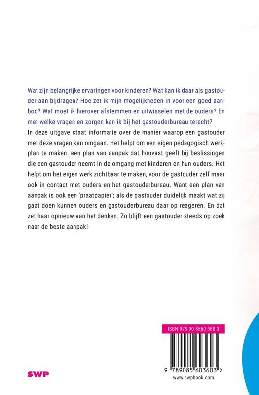 Het helpt om een eigen pedagogisch werkplan te maken: een plan van aanpak dat houvast geeft bij beslissingen die een gastouder neemt in de omgang met kinderen en hun ouders. Het helpt om het eigen werk zichtbaar te maken, voor de gastouder zelf, maar ook in contact met ouders en het gastouderbureau. Want een plan van aanpak is ook een ‘praatpapier’; als de gastouder duidelijk maakt wat zij gaat doen kunnen ouders en gastouderbureau daarop reageren. En dat zet haar opnieuw aan het denken. Zo blijft een gastouder steeds op zoek naar de beste aanpak!