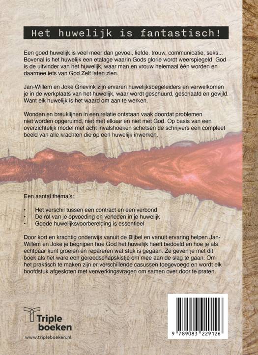 Door kort en krachtig onderwijs vanuit de Bijbel en de dagelijkse ervaring helpen Jan-Willem en Joke je begrijpen hoe God het huwelijk heeft bedoeld en hoe je hierin kunt groeien en repareren wat stuk is gegaan. Ze geven je met dit boek als het ware een gereedschapskistje om mee aan de slag te gaan. Om het praktisch te maken zijn er verschillende casussen toegevoegd en wordt elk hoofdstuk afgesloten met een aantal verwerkingsvragen om samen over door te praten.