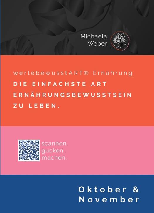 wertbewusstART® Ernährung ist eine ganzheitliche Ernährungsberatung als Kochbuch verpackt. Die Idee - das Versprechen. Alle Lebensmittel werden restlos verbraucht und erst neu gekauft, wenn nichts mehr da ist. Mehr noch, das saisonale Ernährungskochbuch schafft eine Alltagsküche auf eine ganz einfache Art und Weise. Die Gerichte sind keine große Herausforderung - das kann jeder. Das Kochbuch verbindet Körper, Geist und Umweltgesundheit und schafft damit ein neues Ernährungsbewusstsein.Das Kochbuch ist nach den Saisonmonaten Oktober und November geordnet und mit den vorbereiteten Menüplänen schlemmen wir uns durch abwechslungsreiche 5-tägige-Gesundheitswochen. Darüber hinaus finden wir bei den Einkaufs- und Vorratslisten ausführliche Hinweise, wie bewusster Lebensmittelkonsum funktioniert. Und auch die farbig gekennzeichneten Lebensmittelgruppen geben eine gute Orientierung. Die Ernährungsautorin gestaltet für uns eine gesunde und minimalistische Lebensmittel-Vorratshaltung mit nur 69 Lebensmittel. Ein kleines Basislager, das fest verwurzelt ist und trotzdem viel Freiraum für Abwechslung lässt. Ein System gegen Lebensmittelverschwendung!In diesem Ernährungskochbuch wird alles bis zum Ende verbraucht, weil jedes Lebensmittel perfekt auf die Gerichte abgestimmt wurde oder in der Resteküche verarbeitet wird. Wir freuen uns auf eine gesunde Essenswelt. Hier bleibt nichts dem Zufall überlassen, weil das Thema Ernährungsbewusstsein ernst genommen wird.Zusammen mit den "mitMach" Aufgabe der Reflexionsübung und den lesenswerten Geschichten über die verarbeiteten Lebensmittel schafft die Ernährungsautorin eine neue Art von Lebensgefühl. Wir erleben eine Ernährungswelt mit viel Gesundheit, Begeisterung und Mut. Das Ziel ist, dein Inneres gut zu versorgen und die äußere Welt besser zu machen.