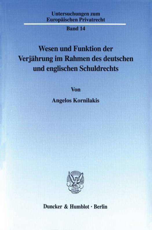 Im Zuge seiner Untersuchung der kollidierenden Interessen bzw. Grundrechte des Gläubigers und des Schuldners stellt der Autor die eigentlichen Zwecke des Rechtsinstituts der Verjährung fest. Die Überprüfung der verfassungsrechtlichen Grundlagen der Verjährung und die Übertragung der Ergebnisse auf das europäische Gemeinschaftsrecht liefern die gemeinsame Grundlage der Verjährung für beide Rechtsordnungen. Daneben setzt sich der Verfasser mit dem englischen Verjährungsrecht, insbesondere im Hinblick auf die Verjährung schuldrechtlicher Ansprüche, auseinander. Im dritten Teil untersucht Angelos Kornilakis das Wesen der Verjährung als zeitliche Grenze zur Geltendmachung eines subjektiven Rechts und das Verhältnis zwischen Verjährung und Anspruch. Dabei vertritt er die These, daß Verjährung und Anspruch keinen dogmatischen, sondern lediglich einen funktionellen Zusammenhang aufweisen. Dies gilt insbesondere in Bezug auf das Verhältnis zwischen Beginn der Verjährung und Entstehung des Anspruchs. Im vierten Teil werden die Probleme des geltenden deutschen Verjährungsrechts dargestellt und Lösungsversuche sowohl de lege lata als auch de lege ferenda bzw. in Bezug auf den Diskussionsentwurf eines Schuldrechtsmodernisierungsgesetzes unternommen. Aus den Ergebnissen seiner Untersuchung leitet Kornilakis abschließend Gesichtspunkte für ein einheitliches europäisches Verjährungskonzept ab.