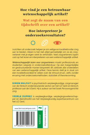 Wetenschappelijk lezen voor zorgverleners maakt professionals en studenten wegwijs in onderzoeksliteratuur. Op een toegankelijke en gestructureerde manier bespreekt dit zakboek alle onderdelen van een wetenschappelijk artikel. Deze kennis stelt je in staat om een kwaliteitsoordeel te vellen over de inhoud ervan, zelfs zonder ervaring met onderzoeksmethoden, statistiek of theorievorming.