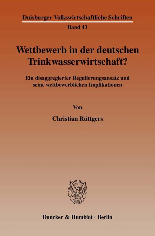 Mit dem disaggregierten Regulierungsansatz wird der bei natürlichen Monopolen als notwendig erachtete regulierende Eingriff in seiner Intensität reduziert. Ausschließlich monopolistische Engpassbereiche, die in Netzbranchen in der Verteilung lokalisiert werden, begründen Regulierungsbedarf. Ansonsten ist eine Rahmenordnung zu etablieren, die Wettbewerb ermöglicht. Christian Rüttgers erweitert die Perspektive durch Einbezug weiterer Marktversagenstatbestände und Disaggregationsdimensionen. Der Autor überträgt den ergänzten disaggregierten Regulierungsansatz auf die deutsche Wasserwirtschaft, um einen konkreten Reformfahrplan zu entwerfen, der den Einfluss von Interessengruppen, Politikern und Bürokraten berücksichtigt.