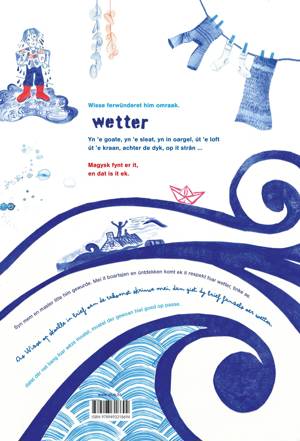 De -foar it grutste part- blauwe yllustraasjes yn WETTER binne makke yn in mingde technyk. De yllustrator hat drûge nulle etsen (Tetrapak print), kombinearre mei kleurpotlead, inket, stimpels en sjabloanen.| De etsen yn it boek binne makke as Tetrapak print, dat is in djipdruktechnyk sûnder gemikaliën.