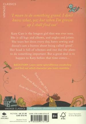 Katy Carr is the longest girl that was ever seen. She is all legs and elbows, and angles and joints. She tears her dress every day, hates sewing, and doesn't care a button about being called "good." Her head is full of schemes and one day she plans to do something important. But a great deal is to happen to Katy before that time comes.