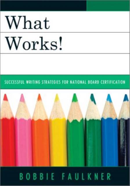WHAT WORKS! offers dozens of writing strategies to clearly and convincingly explain your teaching practice to the National Board Assessors. Writing for the National Board is a type of technical writing teachers rarely use elsewhere and this book lifts the mysterious fog surrounding how to provide evidence of the National Board Standards.