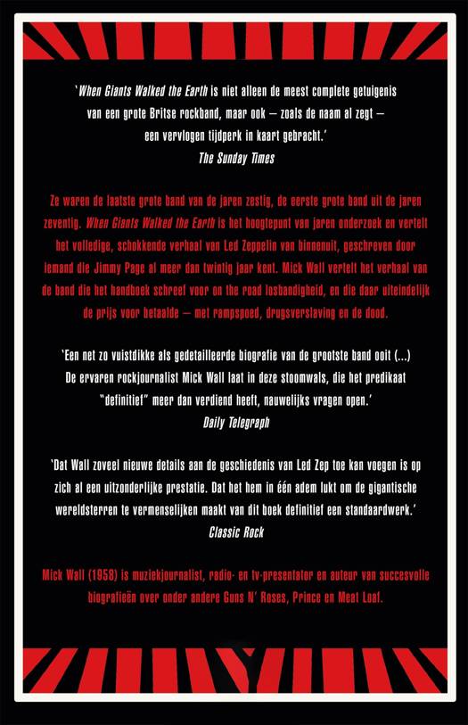 Ze waren de laatste grote band van de jaren zestig, de eerste grote band uit de jaren zeventig. When Giants Walked the Earth is het hoogtepunt van jaren onderzoek en vertelt het volledige, schokkende verhaal van Led Zeppelin van binnenuit, geschreven door iemand die Jimmy Page al meer dan twintig jaar kent. Mick Wall vertelt het verhaal van de band die het handboek schreef voor on the road losbandigheid, en die daar uiteindelijk de prijs voor betaalde - met rampspoed, drugsverslaving en de dood.